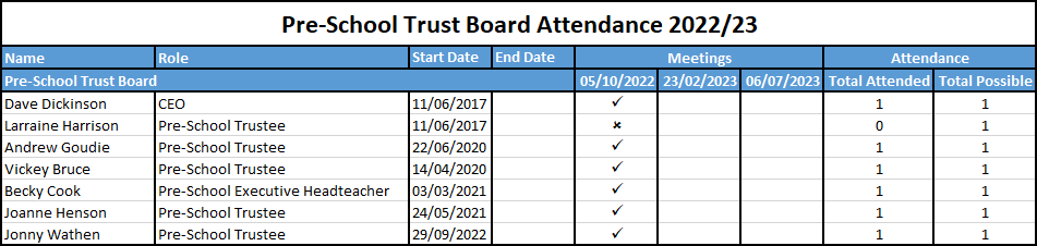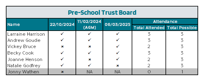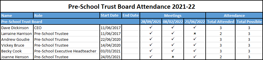 As per the Articles of Association for Waterton Pre Schools, the Trust Board shall consist of not less than 5 Trustees
